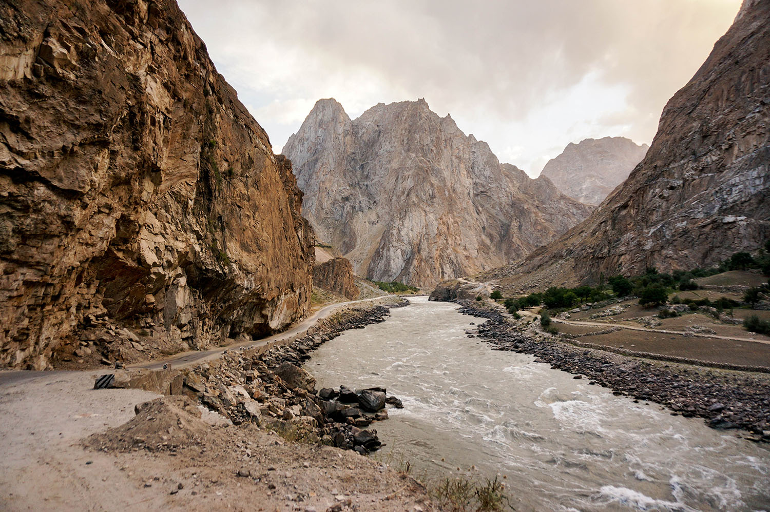 Pour rejoindre la vallée du Wakhan, j'avais repéré sur ma carte une ancienne piste soviétique que j'imaginais praticable. A tord. Je pousse mon vélo sur un chemin que je devine plus que je ne vois et atteins un col à plus de 4400m d’altitude avant de descendre sur un étroit sentier. La vallée secrète se referme dans un canyon exigu. Je porterai alors mon vélo entre pierriers et éboulis sur un sentier inexistant traversant à plusieurs reprise une rivière tumultueuse. L'orage approche. Dois-je faire demi-tour ? Épuisé, coupé du monde et au milieu de nulle part, je ne souhaite surtout pas rester bloqué et moins encore risquer un accident. Au terme de quatre heures interminables, la vallée en rejoint une autre. Mon inquiétude laisse place à un immense sentiment de soulagement.